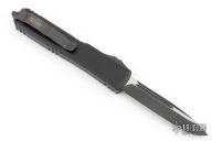 This Ultratech OTF automatic by Microtech features a S/E DLC stonewash finished blade with a standard edge. Black aluminum frame with black hardware and stainless steel clip. Glass breaker. Comes with original box and papers. Excellent condition.