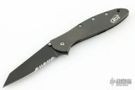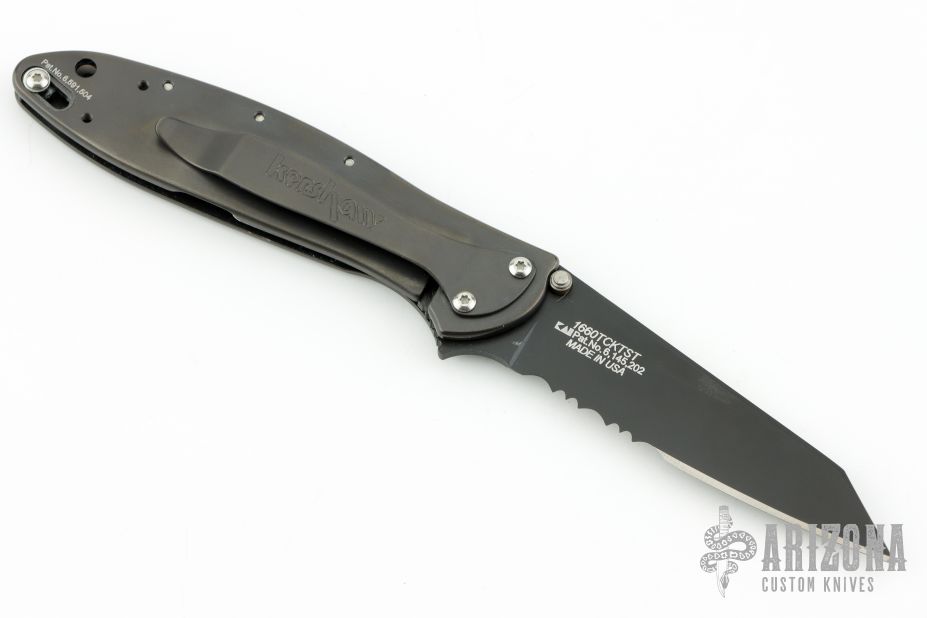 This Kershaw assisted opening flipper features a black "Random Task" partially serrated blade with dual thumbstuds and flipper. The handle has a black stainless steel frame with stainless steel clip and a safety. Comes with original box and papers. Excellent Condition.
