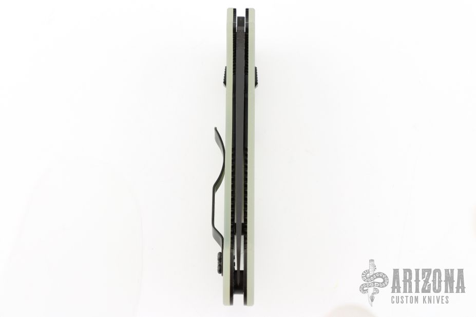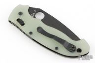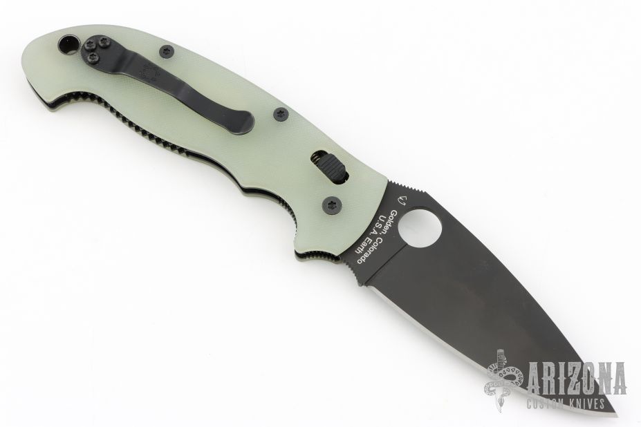 This Manix 2 has a black CMP S30V stainless steel drop point blade with thumbhole and notched thumbrest. Handle is jade G-10 over stainless steel liners, 2-way reversible tip up stainless steel clip, and lanyard tube pin. Comes with original box and paperwork. Excellent condition.