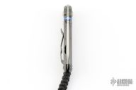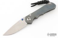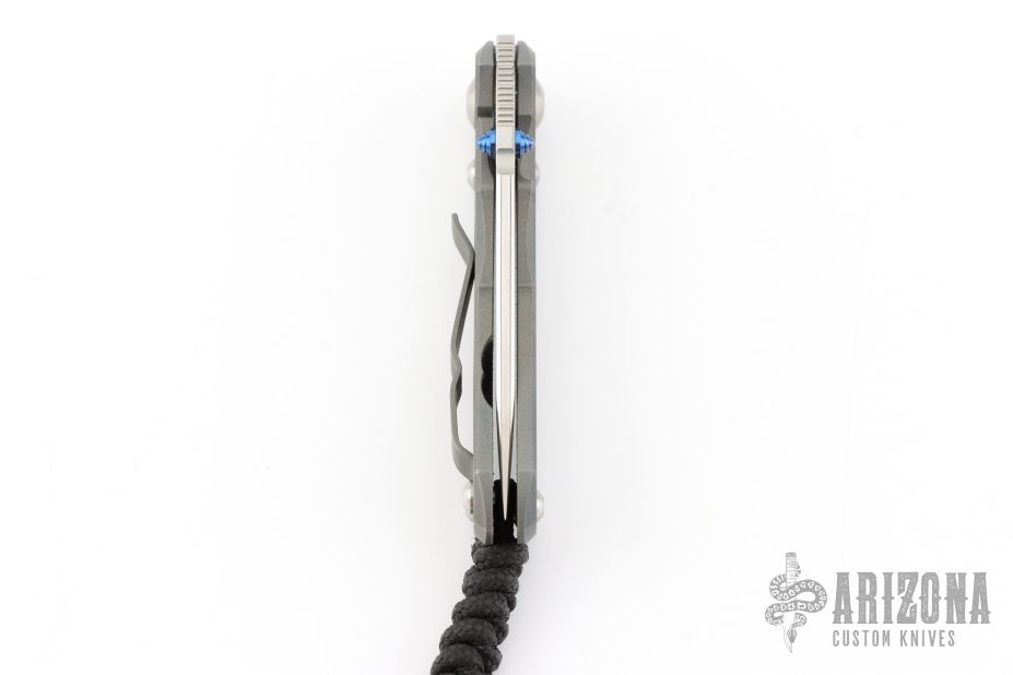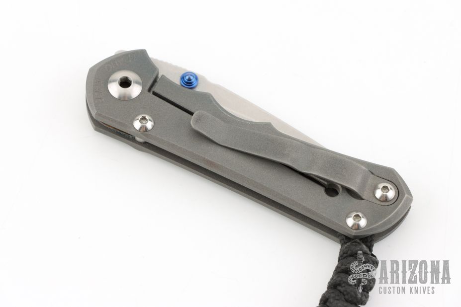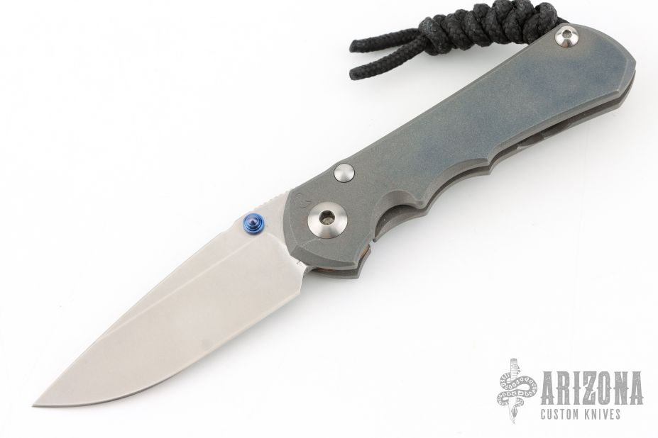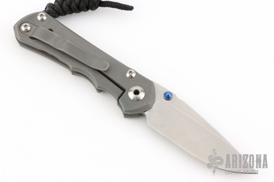 This Small Inkosi from Chris Reeve Knives features a tumble finished drop point blade with dual anodized thumb studs and notched thumbrest. The handle has a glass blasted titanium frame over a single barrel spacer with a matching bead blasted titanium tip up clip. Includes original box, lube, tools, and COA dated May 17, 2016. Has some jean wear and has some scuffs, otherwise great condition.