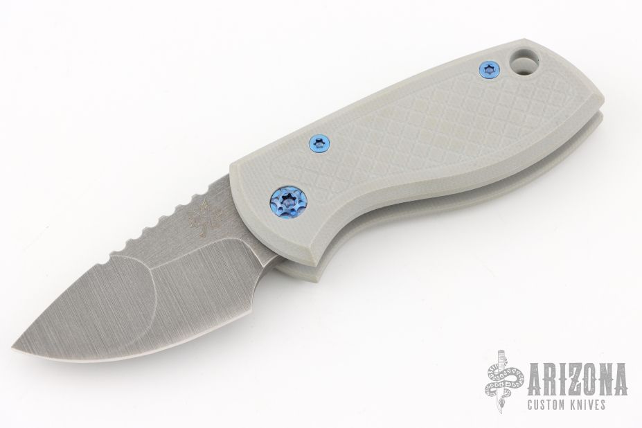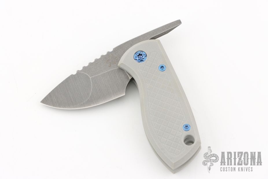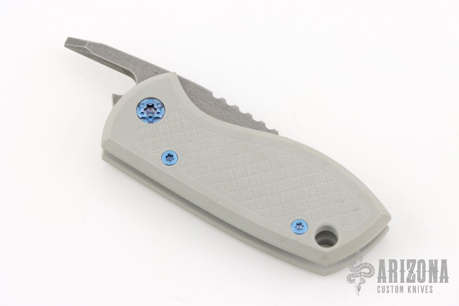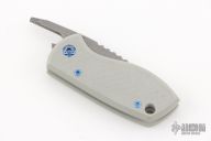 This Friction Folder by JW Knife & Tool features a multi-grind satin finished blade with thumb rest. The handle has milled G10 scales, titanium posts, and lanyard hole in pommel. Comes with COA and original box. Excelllent condition.