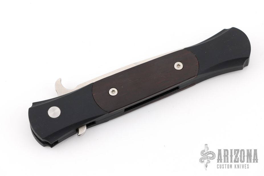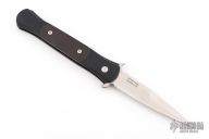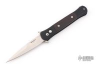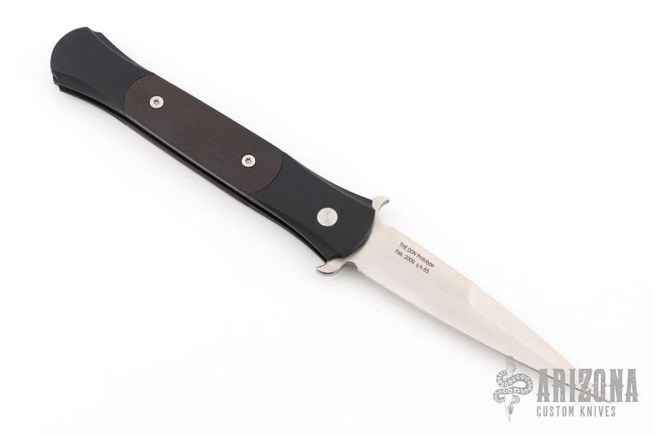 This Don by Pro-Tech features a satin finished blade with false top edge. The handle has a black aluminum frame with cocobolo inlays. This one is Prototype Feb. 2009 s/n 65. Comes with a Pro-Tech box and papers. Excellent condition.