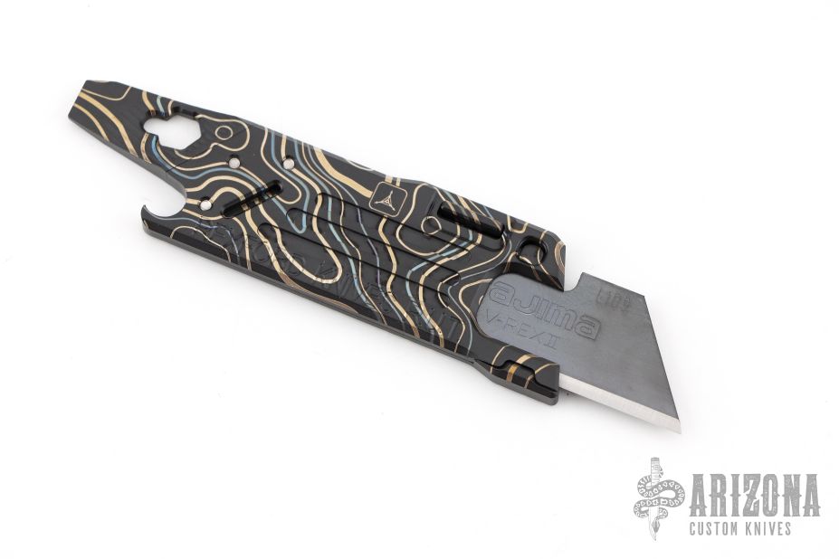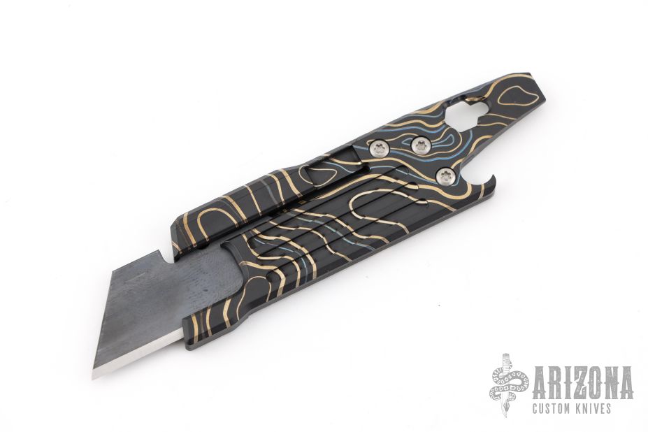 This Rexford RUT (Rexford Utility Tool) from Todd Rexford is a TAD Gear edition, it uses a standard utility razor blade. Blade can easily be replaced. This piece features a functional lanyard hole. Flat head screwdriver/pry tip, and bottle opener. Excellent condition.