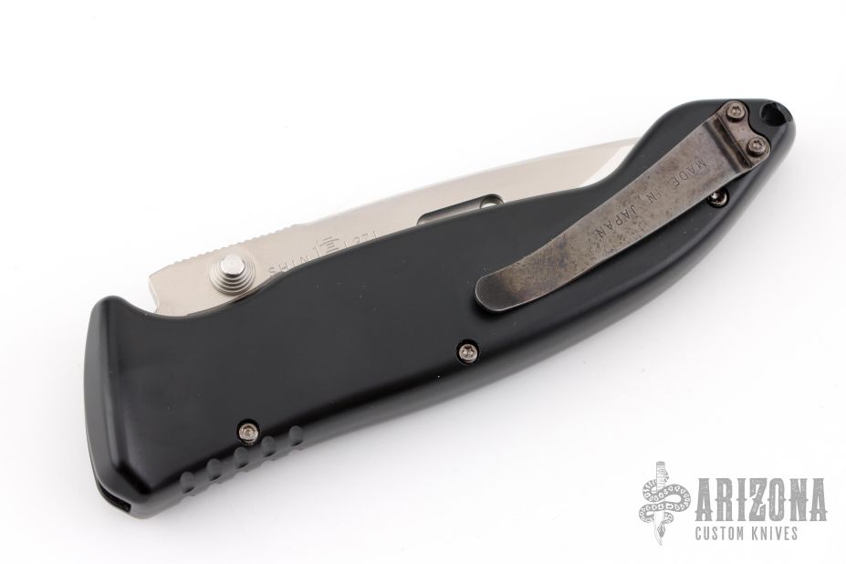 The handle is black aluminum with rayskin inlay. Bead blast flats, mirror polish blade bevels. SHIN #L271. Comes with original box, and papers. Has a couple extremely light scratches, otherwise excellent condition.