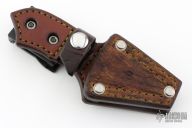 I have been active in the knife community since the late 90’s as a collector, user and craftsman. I am a lifelong woodworker, metalworker and tinkerer, all passions that drove me to start making knives, and by extension sheaths in the early 2000’s. In 2011 we welcomed our newborn daughter to the family, and there was no longer time for my knife making hobby, but I moved my leatherworking studio from my detached workshop into the house so I could pursue my true passion and still be close to family. In 2018 I left my corporate technology career to be a full time father and sheath maker.