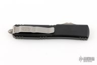 This Ultratech OTF automatic by Microtech features a S/E apocalyptic finished blade with a standard edge. Black aluminum frame with stainless steel clip. Glass breaker. Serial number 230365 and dated 12/2021. Comes with original box and papers. Has a couple light scuffs and scratches, otherwise excellent condition.