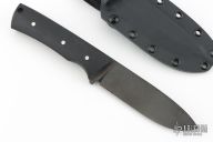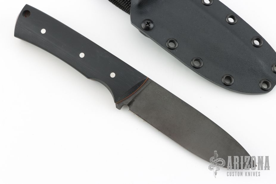 The blade is made from supremely tough A2 tool steel, which in my testing has been shown to be able to take more abuse than any reasonable person would want to put it through. The tang of the blade is skeletonized to remove unnecessary weight and improve balance, while the blade geometry itself is designed to emphasize cutting performance while still being tough. The blade is coated with DLC, an ultra-tough and highly wear resistant coating that will stay looking great for a long time and help protect the blade from corrosion.