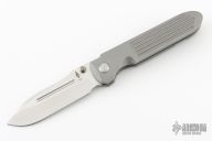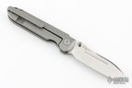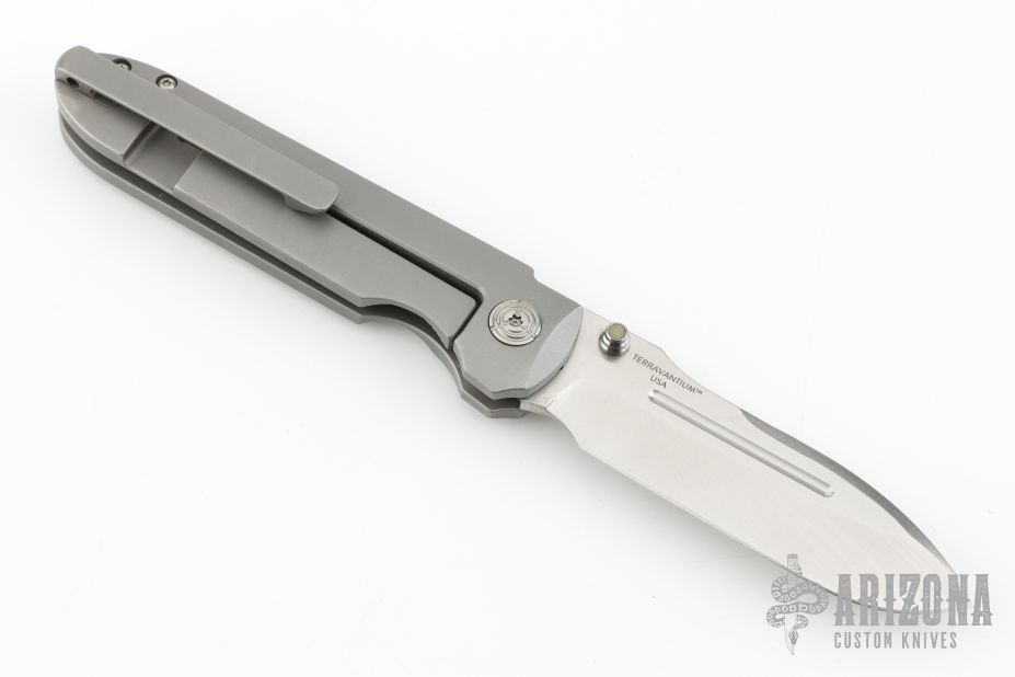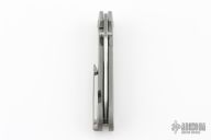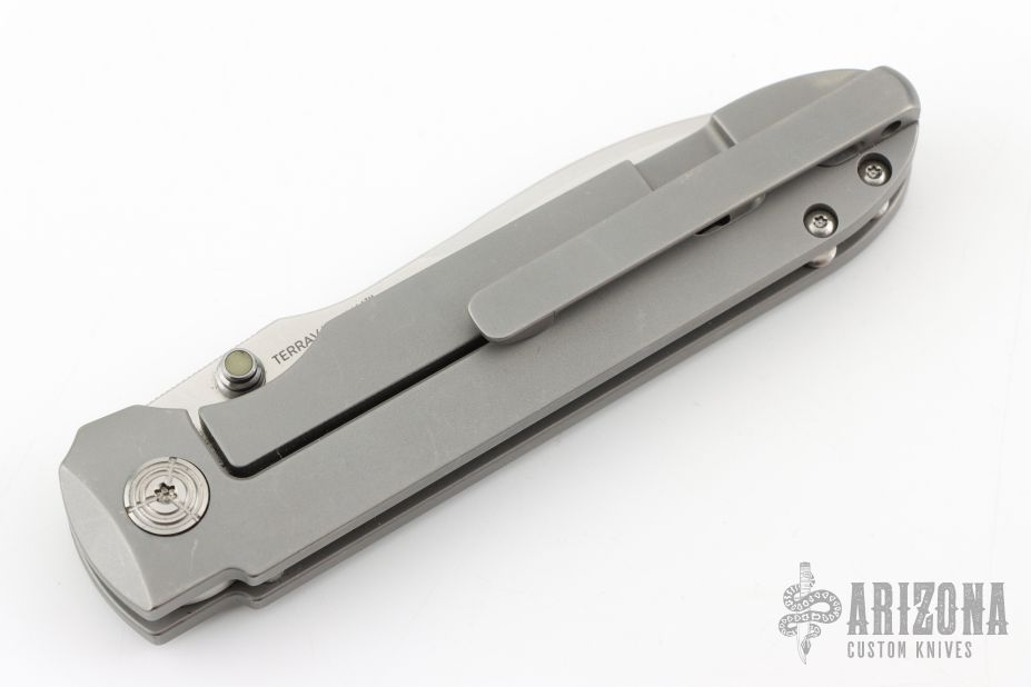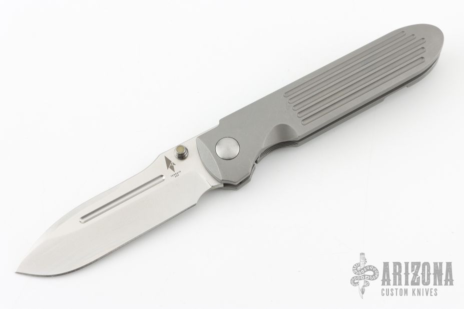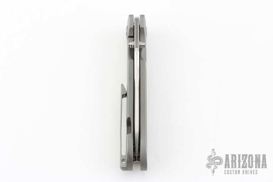This invictus features a satin finished spear point blade with fullers, notched thumbrest and dual thumbstuds. The handle has a bead blasted titanium frame with milled fullers, titnaium standoffs, tip up bead blasted titanium clip with hidden screws. Nice detent, lockup and blade seating. Has scuffs and scratches throughout. Good condition; great user condition otherwise.