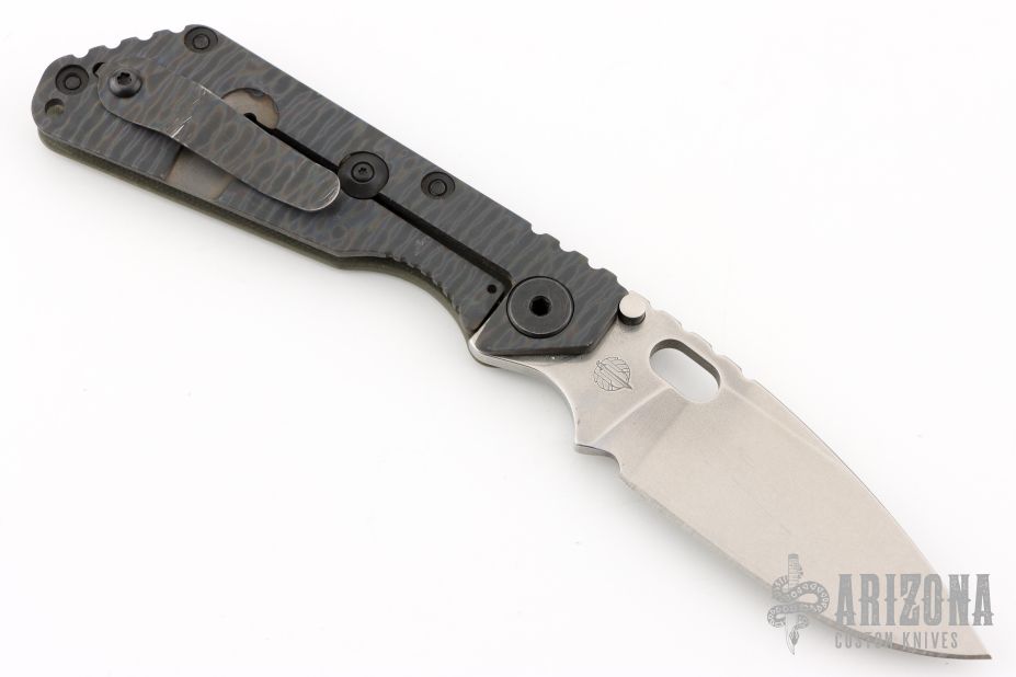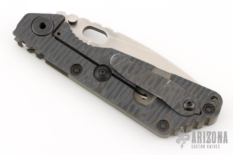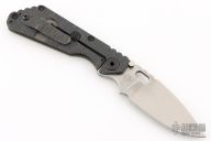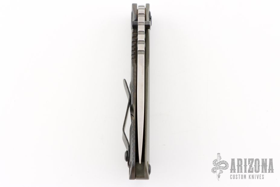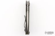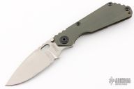 This SnG CC by Strider Knives features a stonewash finished blade and smooth green G-10 with flamed titanium frame and tip up clip. Notches on thumbrest, rear of handle, and lockup. Includes Hinderer "Lock Bar Stabilizer" for maximum reverse lock retention. Has black hardware. Has some scuffs and scratches, great condition otherwise.