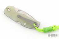 This C41GM4P5 Native 5 Sprint Run by Spyderco features a satin finished drop point CPM-M4 blade with swedge, thumb hole and jimping on the thumb rest and choil. The handle is comprised of textured jade G-10 scales over stainless steel backspacer. The steel pocket clip is 4 way reversible. Lanyard hole in pommel. Includes original box and paperwork. Excellent condition.