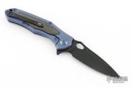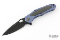 The 804 Vapor from WE Knife Co. is an elegant and functional, modern gentleman's folder that provides style and performance in equal measure. The Vapor starts with a premium, CPM S35VN, drop point blade. The blade is housed in 3D machined and contoured titanium handle slabs that are outfitted with Carbon Fiber inlays and a Carbon Fiber backspacer for a high level of style while reducing the overall weight. This version comes with a black stonewash blade finish and blue anodized titanium handles.