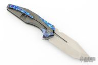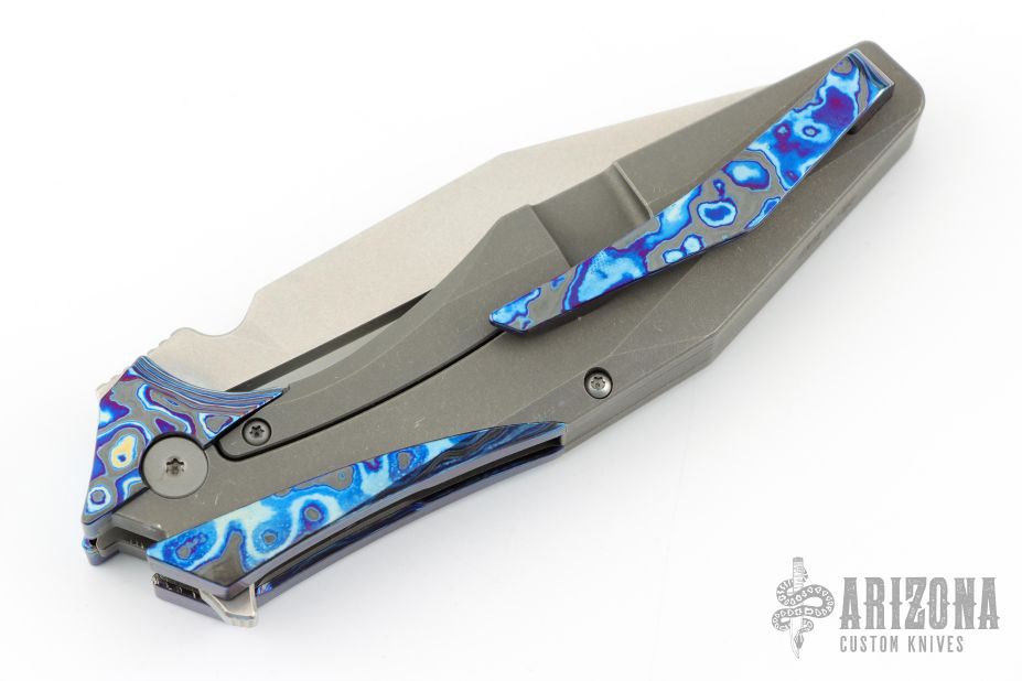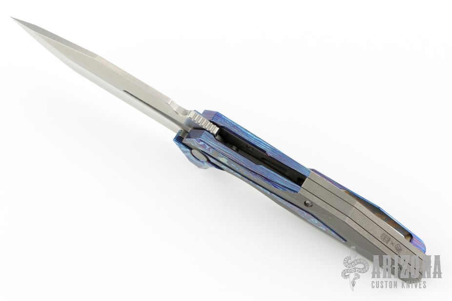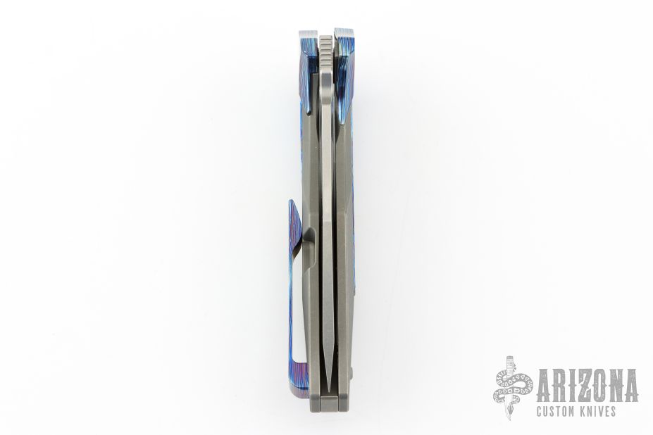 This one has a bead blasted blade with notched thumbrest and flipper. the handle has a stonewashed titanium frame with upgraded ZircuTi accents, comes with original anodized titanium accents. Comes with original zippered case and COA dated 9/1/22 and Excellent condition.