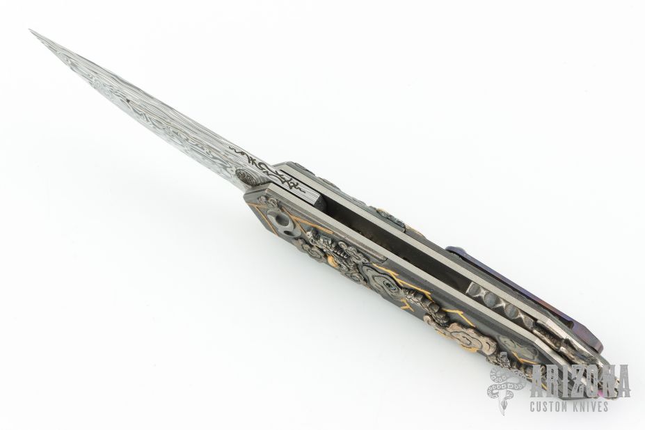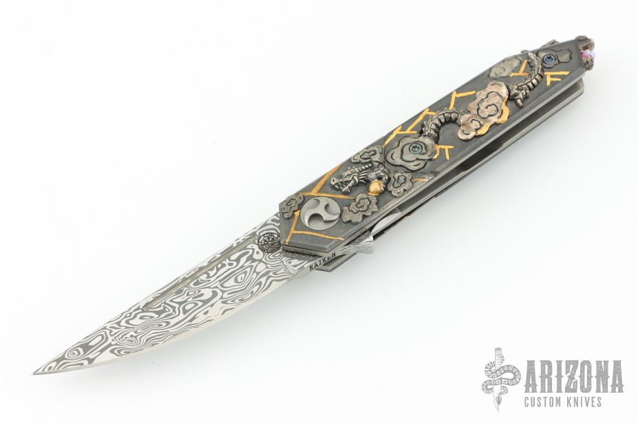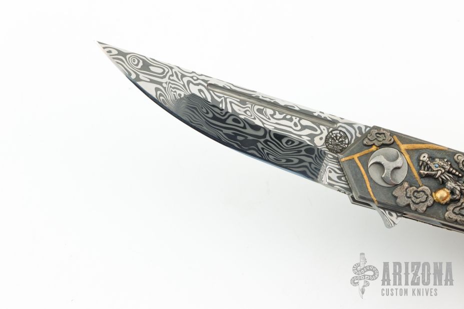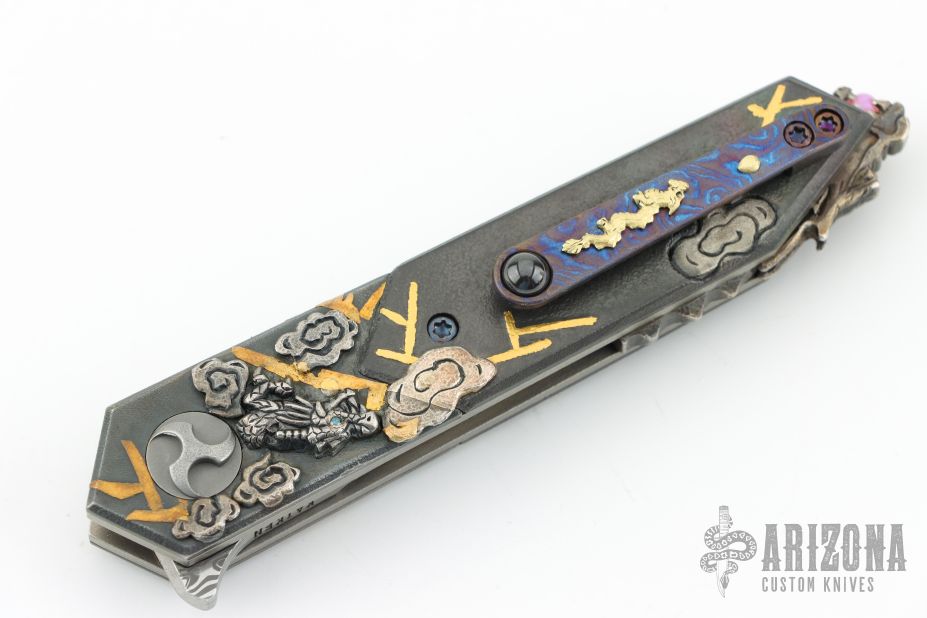 " I was born in Australia and trained as a Jeweler.I have been doing JuJutsu since I was 6 years old and developed my own style in 1990. I have a 7th Dan Black belt. I also study Batto, live sword cutting and have a 3rd Dan. I moved to Japan to live in 1986 and have been creating knives since 1993.In that time I have won many awards including best in show and best art knife at shows in America, Australia and Japan. My work has been published in many magazines in America, Australia, France, Italy, Japan and Russia. I do all the work myself, but I don't make my own steel. I prefer to use Damasteel, ZDP-189, VG-10 and ZDP-189 VG-10 san mai. Anything that looks like gold on my knives is either 18k or 24k gold. I like to use rare materials such as mammoth tusk, titanium, gold, silver and many others. Each knife that I create is a one of a kind and a work of love which I hope will survive the passing of time for many, many generations. That is why I use materials that are impossible to or very resilient to rust. My knifes often tell a story and have a Japanese theme to them. Probably a combination of my love of Japan, its history, mythology and the 35 years that I have been here in Japan. I also like to hide many interesting things on my knives as part of the voyage of discovery of my art."