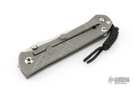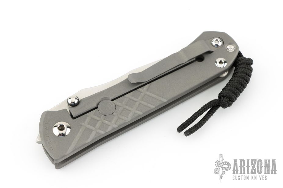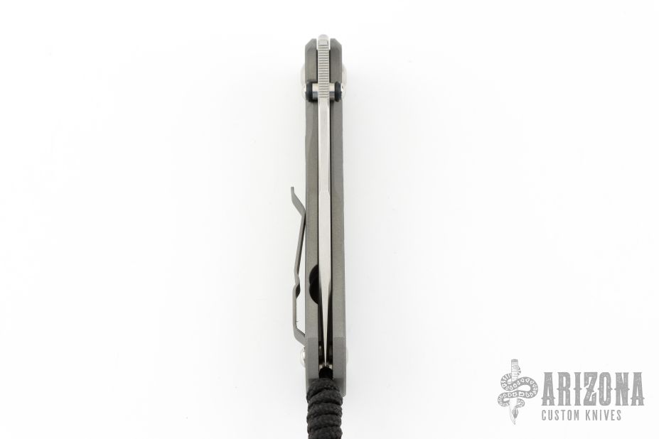 This Unumzaan from Chris Reeve Knives features a stonewash finished tanto blade with dual thumb studs and notched thumbrest. The handle is comprised of blasted and milled titanium with matching tip up clip. Lanyard pin with lanyard and spacer bead in pommel. Comes with original box, papers, cloth, lube and tool and COA dated June 12, 2025. New condition.