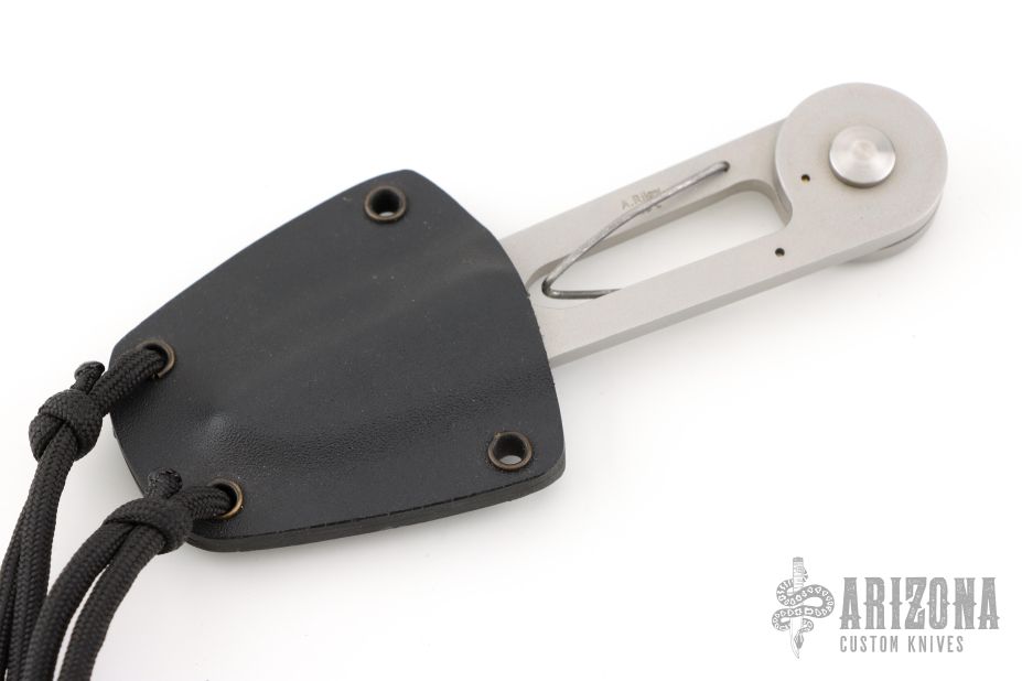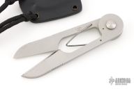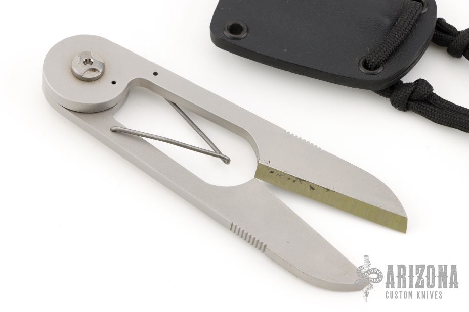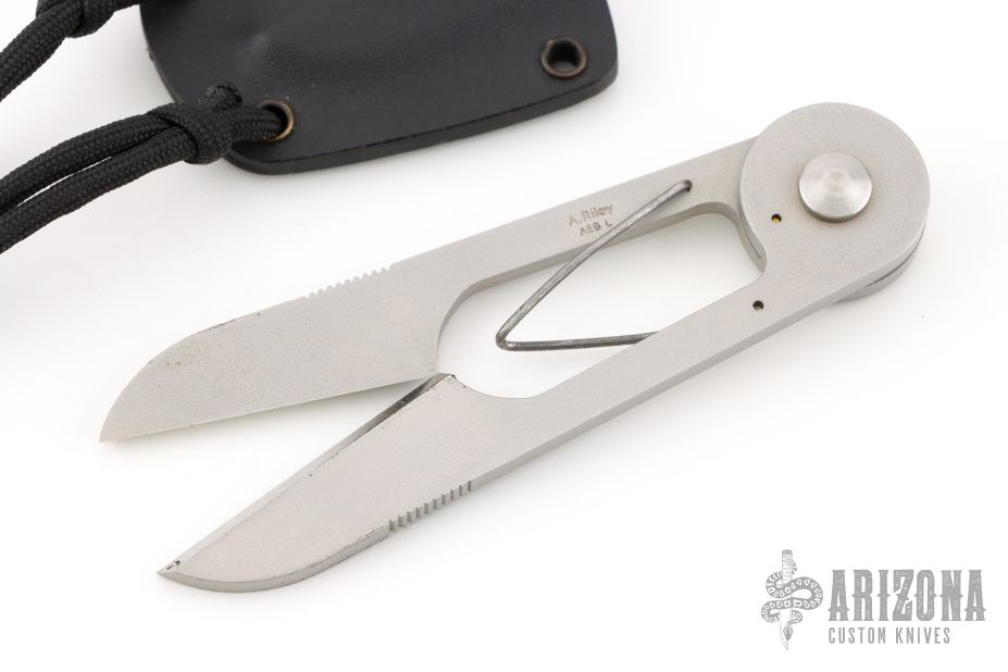 Scissors by Andrew Riley. Made from AEB-L steel. Comes with kydex sheath. Has a little patina and some scuffs, otherwise great condition.