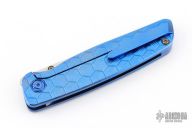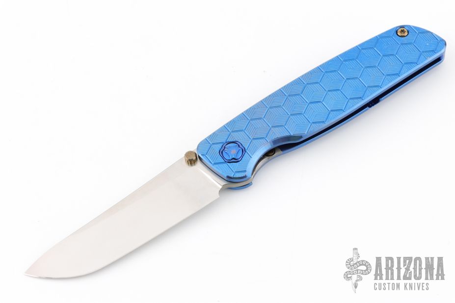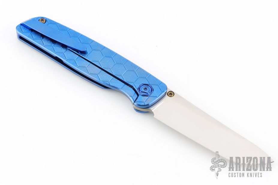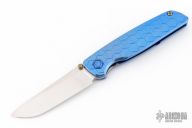 This Cypress by Robjohnsons features a bead blast finished blade with thumbhole, notched thumbrest and flipper. The handle has a milled and anodized titanium frame with anodized titanium backspacer and tip up clip with hidden screws. Rides on bearings, nice detent, lockup and blade seating. Come with original box. Excellent condition.
