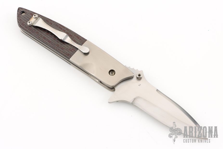 "I began making knives in 1996. All of my knives are made by the stock removal method. Most of the folders I make are of the liner design. I do make other type locks by request. I use a wide variety of materials in my knives. The Damascus I use comes from top makers of Damascus. Ivory and pearl are of the highest quality I can find. Other materials I use include any type of steel that's available for blades and bolsters. Scale material will include micarta, carbon fiber, G-10, titanium etc."