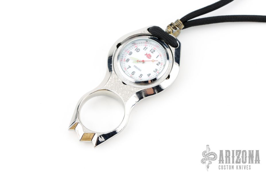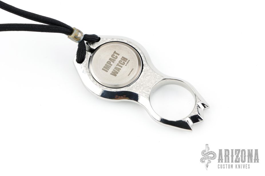 This Piranha Impact Watch is incased in a 316L stainless steel knuckle. The time can be adjusted and the battery can be replaced by removing the watch from the knuckle, push it out from the back of the knuckle. New from maker at the 2025 Blade Show. Comes with original packaging.