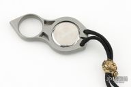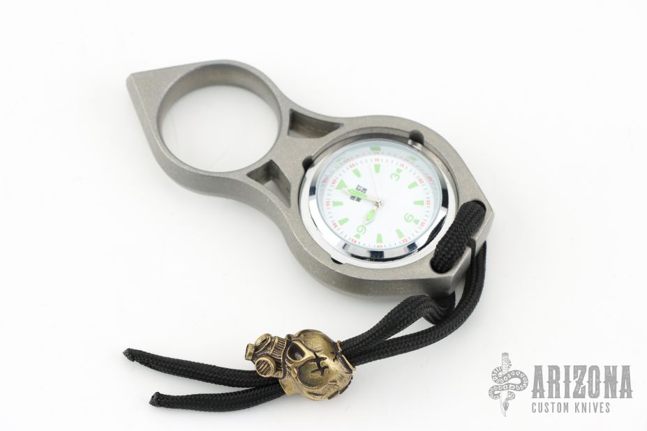 This Piranha Impact Watch is incased in a 316L stainless steel knuckle. The time can be adjusted and the battery can be replaced by removing the watch from the knuckle, push it out from the back of the knuckle. New from maker at the 2025 Blade Show. Comes with original packaging.