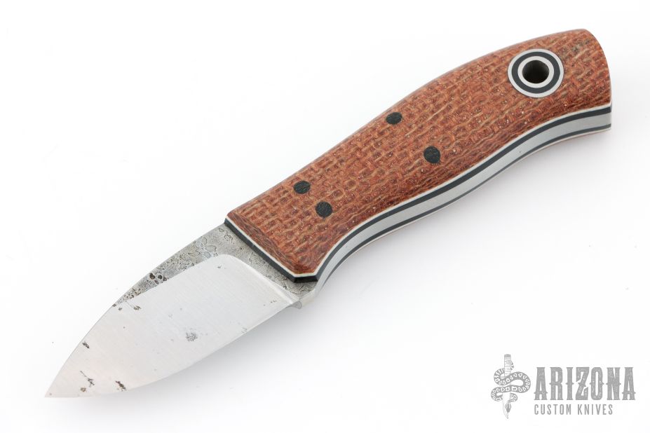 Hi, I am Andy Roy, the maker at Fiddleback Forge, LLC. I started making knives in 2007, and went full time May 1, 2009 when I got laid off of my last engineering position. I consider myself a toolmaker, and much of the focus of my work is in the handle. I strive to make the most comfortable handle you?ve ever held. It is important to me that you can hold the knife in many positions comfortably and do hard extended work with the blade. I also think it is important for the handle to index the knife in your hand, so that no matter how you hold it, you know where the edge is without having to look. I use a variety of steels, and my favorite grinds are convex, and Scandi. In 2010 I spent a lot of time developing a finish treatment for the flats of my knives that I call 3D Spalted Steel. It adds a unique character to my blades, and I think it complements the refined handle work well. I am very excited to be working with Arizona Custom Knives, and hope you enjoy the Fiddleback Forge knife you buy from them.