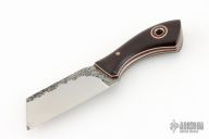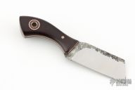 Hi, I am Andy Roy, the maker at Fiddleback Forge, LLC. I started making knives in 2007, and went full time May 1, 2009 when I got laid off of my last engineering position. I consider myself a toolmaker, and much of the focus of my work is in the handle. I strive to make the most comfortable handle you?ve ever held. It is important to me that you can hold the knife in many positions comfortably and do hard extended work with the blade. I also think it is important for the handle to index the knife in your hand, so that no matter how you hold it, you know where the edge is without having to look. I use a variety of steels, and my favorite grinds are convex, and Scandi. In 2010 I spent a lot of time developing a finish treatment for the flats of my knives that I call 3D Spalted Steel. It adds a unique character to my blades, and I think it complements the refined handle work well. I am very excited to be working with Arizona Custom Knives, and hope you enjoy the Fiddleback Forge knife you buy from them.