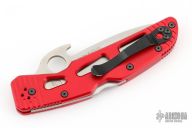 The Emerson opening feature is a hook curving out the top of the knife's blade. When removing the knife from a front pocket it catches the pocket's edge quickly opening the knife blade so that it's ready to use. The knife can also be taken out of the pocket without engaging the opening feature by pulling it straight up and out with your fingers on top of the closed blade.