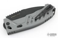 A shape with the profile of RAO C was laser cut to lighten the steel frames; this was then used to create a gadget that comes with the knife.