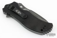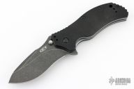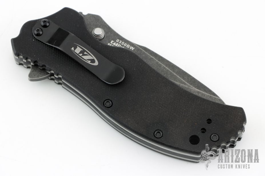 This 0350BW liner lock flipper by Zero Tolerance features a blackwashed recurve spear-point blade with swedge, dual thumb studs, notched thumb ramp and flipper, stainless steel liners and black G10 scales. It also features the Speed-safe assisted opening system. Great function. Includes original box and paperwork. S/N 18771. Excellent condition.