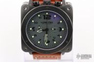 The Lum-Tec Bull45 A17 Chronograph Watch with MDV Technology features top side crown end pushers, thick sapphire crystal, black stainless steel construction, and double side anti-reflective coating.