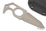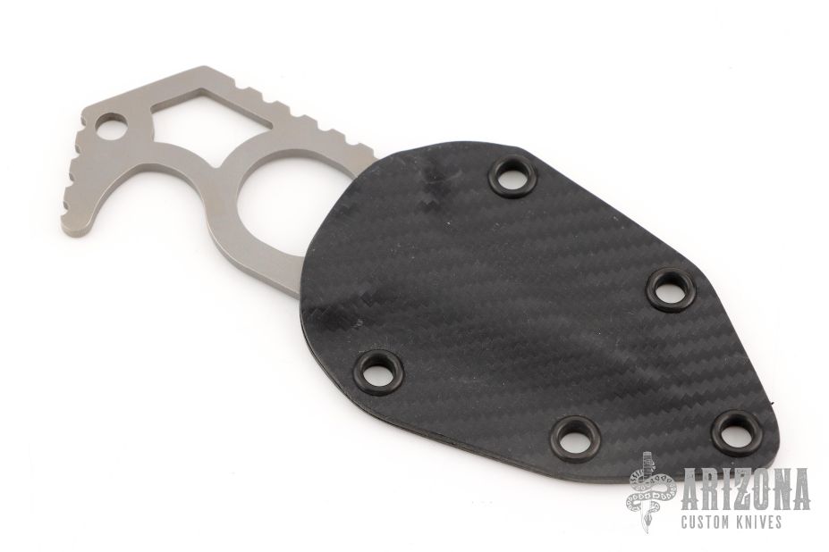 This Silence Push Dagger by Schwartz Tactical features a titanium chisel ground blade with carbidized edge.  .125" Blade Stock.  1.197" Blade Depth. The handle is skeletonized for a lighter overall weight. Comes with Kydex sheath and maker's card. Light scratches are visible on the blade and handle otherwise the knife is in great condition.