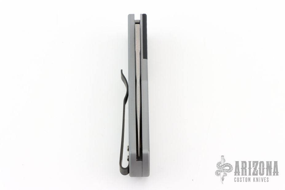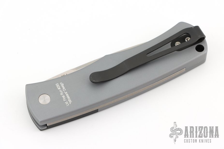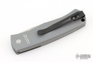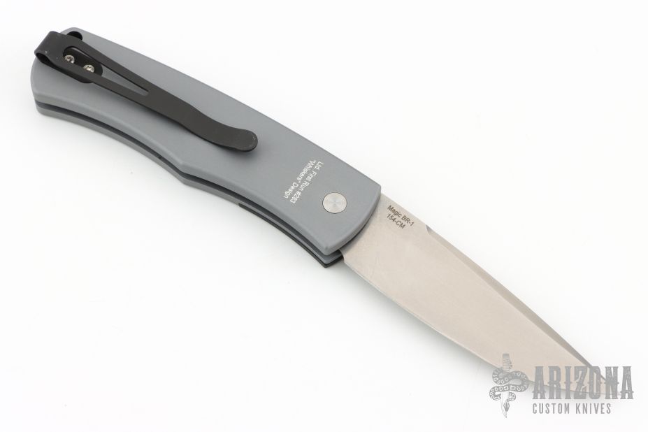This Magic BR-1 Bolster Release Automatic from Pro-Tech Knives features a drop point stonewashed 154-CM blade with swedge. The handle has a grey aluminum frame with checkered bolster. Black coated stainless steel clip is positioned for tip up carry. Lanyard hole in the pommel. Comes with original box and papers. Excellent condition.