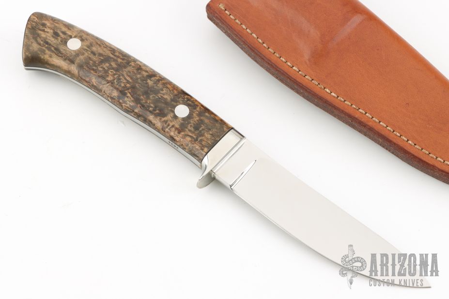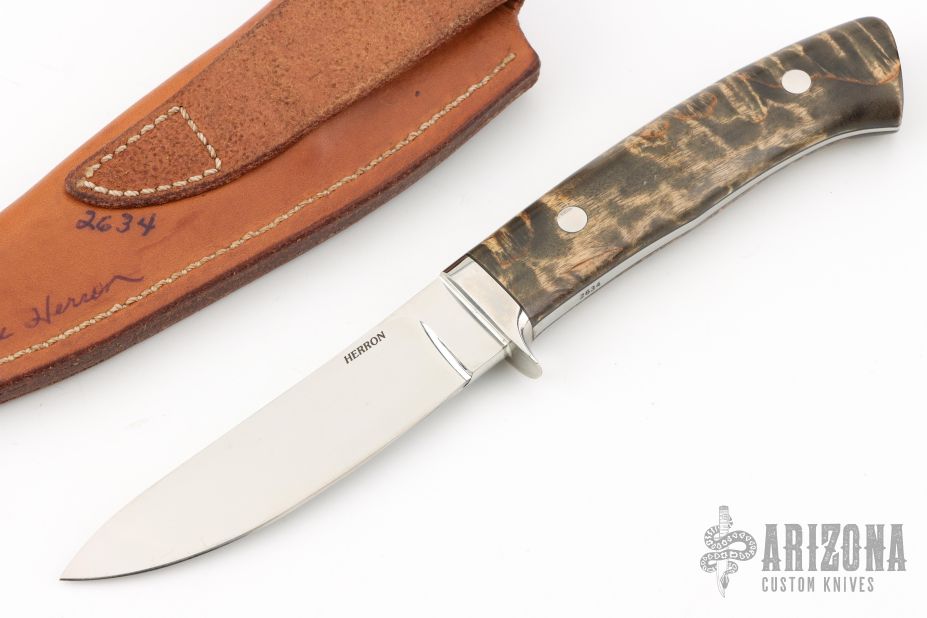 George Herron was a significant player in the custom knife world. He was well known for his exquisitely crafted and designed stock removal knives, he specialized in hunting knives and skinners, he has a significant collector following. He was a past president of the Knifemakers Guild and founded the South Carolina Knifemakers Guild, in 1987 he was inducted into the Blade Cutlery Hall of Fame. George passed away in 2007.