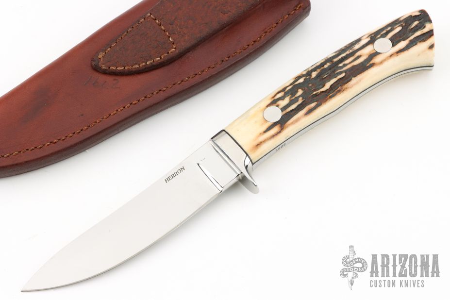 George Herron was a significant player in the custom knife world. He was well known for his exquisitely crafted and designed stock removal knives, he specialized in hunting knives and skinners, he has a significant collector following. He was a past president of the Knifemakers Guild and founded the South Carolina Knifemakers Guild, in 1987 he was inducted into the Blade Cutlery Hall of Fame. George passed away in 2007.