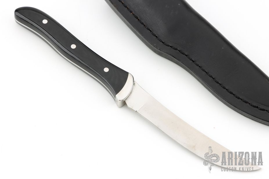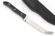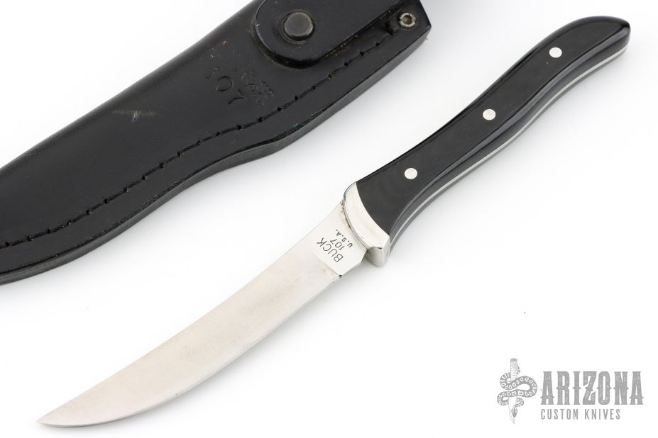 This Scout from Buck Knives features satin finish blade, .067" Blade Stock .625" Blade Depth. The handle is comprised of micarta scales and steel bolsters a over full tang construction. Comes with a black leather sheath. Excellent condition.