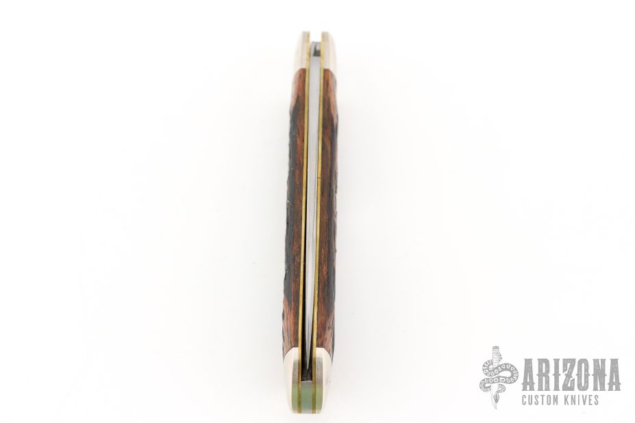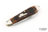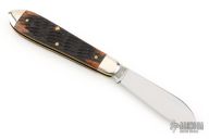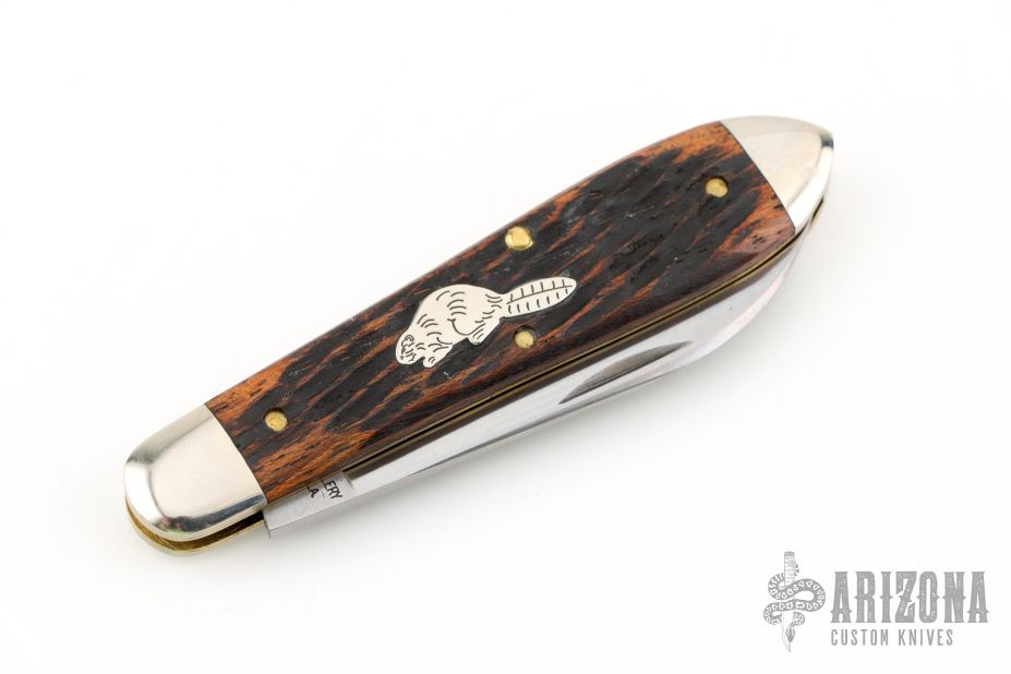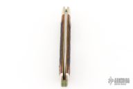 This slipjoint by Great Eastern Cutlery features a satin finished blade with nail nick. The handle has nickel silver bolsters and brass liners, Jigged Brazilian Cherry Wood covers, steel spring. Comes with original tube. Excellent condition.