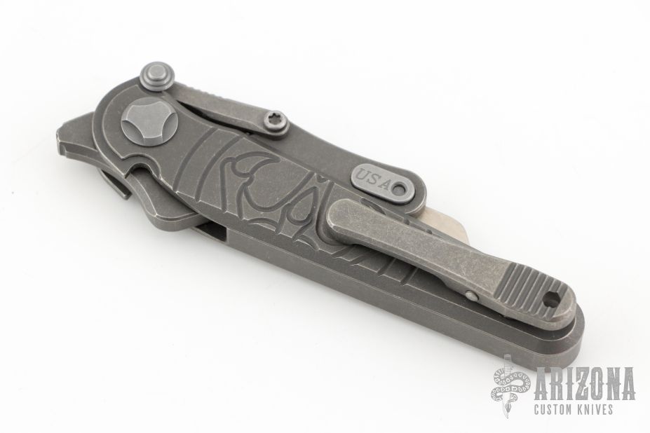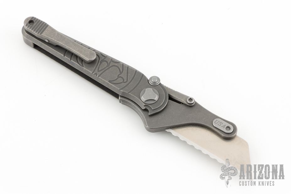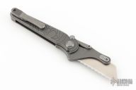 G&G Hawk Shortcut utility knife. Stonewashed Titanium Frame and flipper. Snappy flipping action. Solid lockup, blade seating and centering.