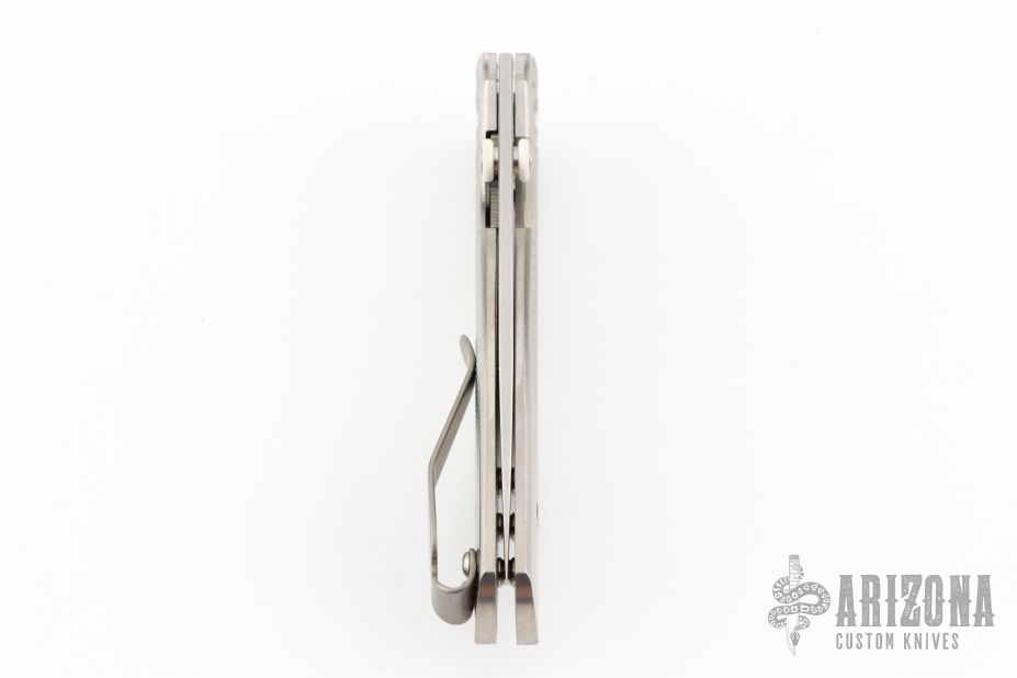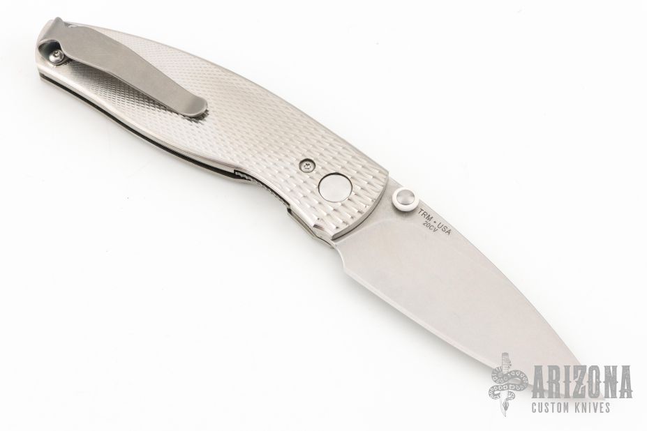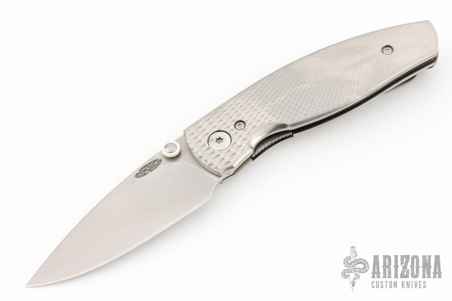 This Neutron Linerlock by Three Rivers features a stonewash finished blade with dual thumbstuds. The handle has milled titanium scales, titanium liner with a titanium tip up reversible clip. Nice detent, lockup and blade seating. Comes with original box and papers. Excellent condition.