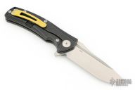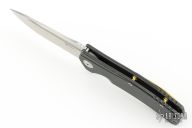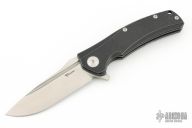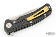 This Horizon C by Reate Knives features a stonewashed blade with notched thumbrest and flipper. The handle has a milled and black tumbled titanium frame with anodized titanium tip up clip and barrel spacers. Nice detent, lockup and blade seating. Comes with nylon zippered case. Excellent condition.