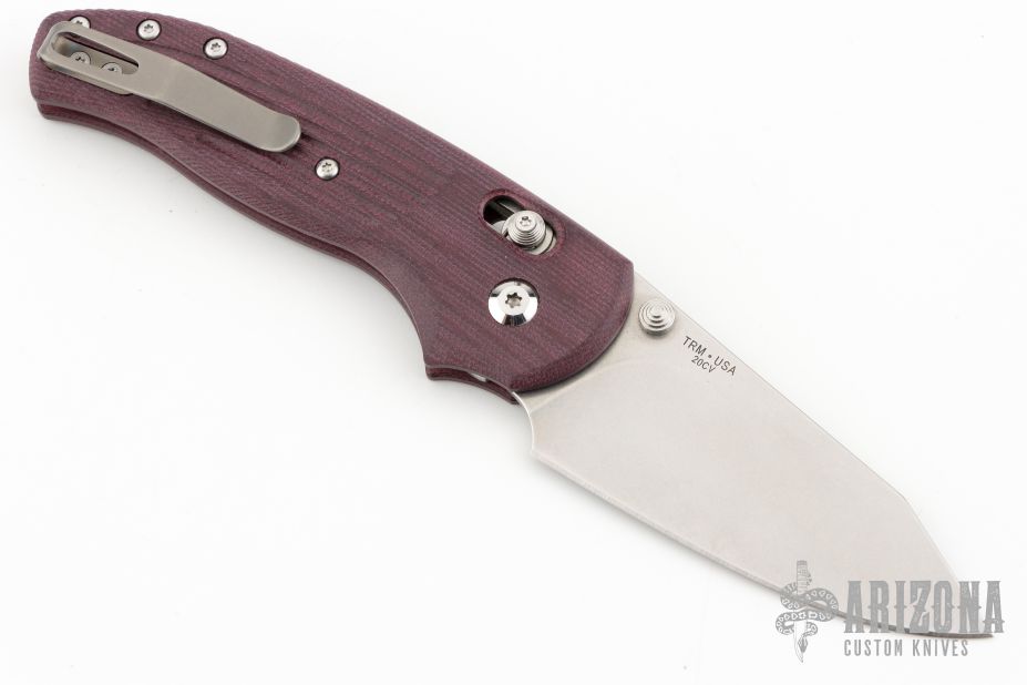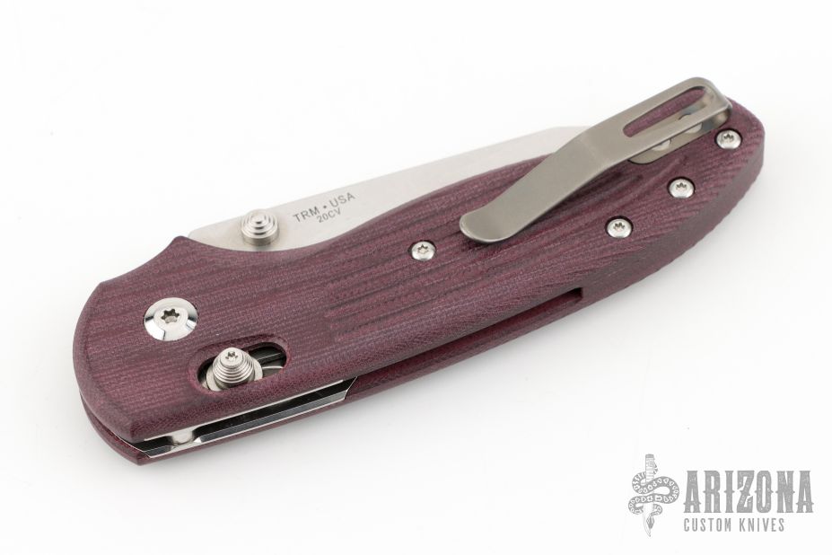 This Shadow River lok by Three Rivers features a tumble finished blade with dual thumbstuds. The handle has canvas micarta scales, titanium liners and tip up reversible clip. Nice detent, lockup and blade seating. Comes with original tube. Excellent condition.