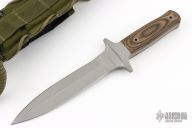 This is a full integral dagger, drop-forged out of one massive piece of 440C stainless steel. This technically challenging procedure guarantees the maximum in stability. You can't hold it in your hand without recognizing its unbelievable strength and sturdiness. A true masterpiece, both for the collector and the user. The fully double-edged 7" blade provides an impressive appearance. Carefully sculptured green canvas Micarta scales provide an excellent grip under all conditions. Comes with a green nylon sheath. Has some light scuffs/scratches, otherwise excellent condition.