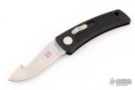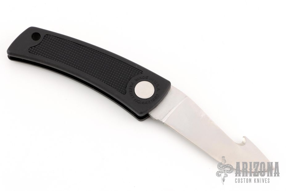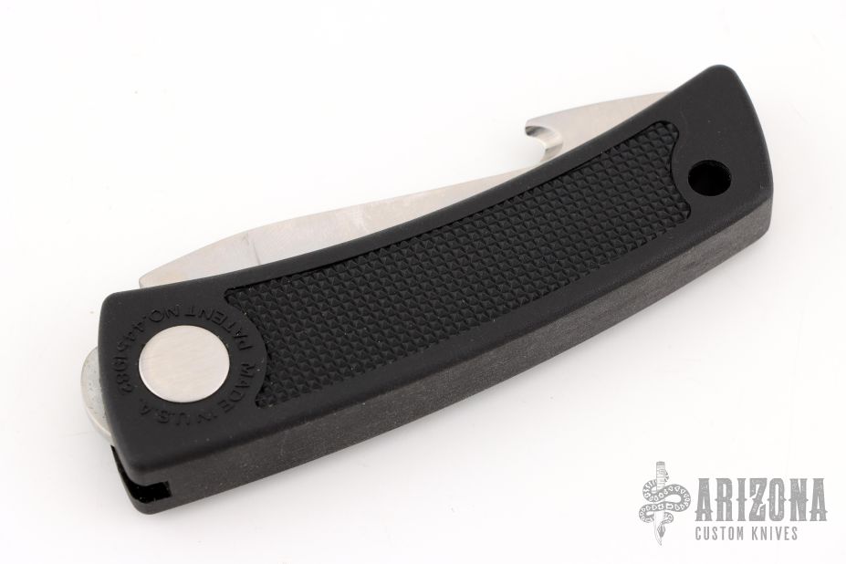 This Bolt Action Knife by Gerber features a satin finished blade with guthook. The handle is black with lanyard hole and slide release. Comes with a black nylon Gerber sheath, original box and papers. Excellent condition. Hard to find.
