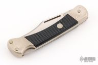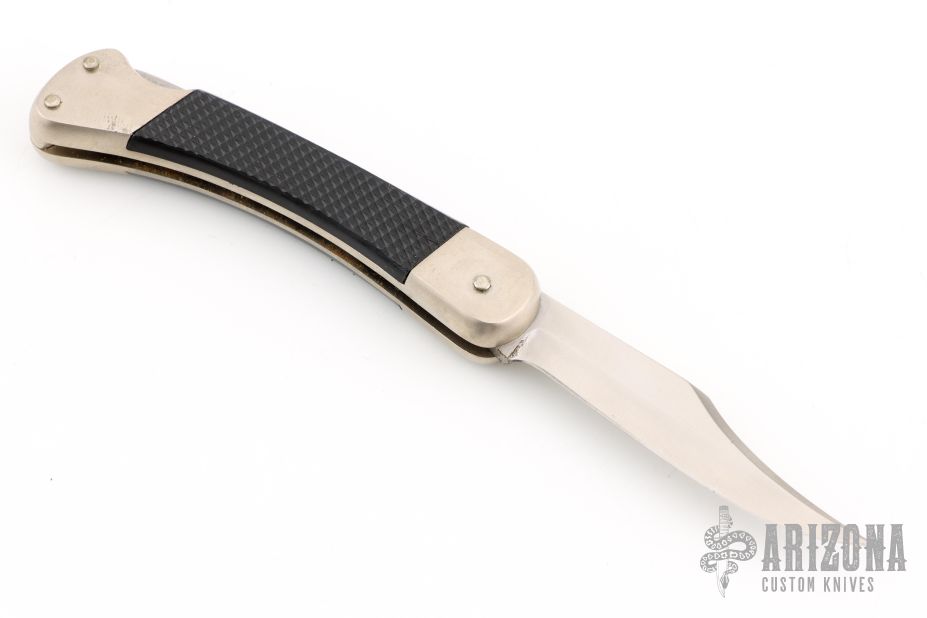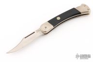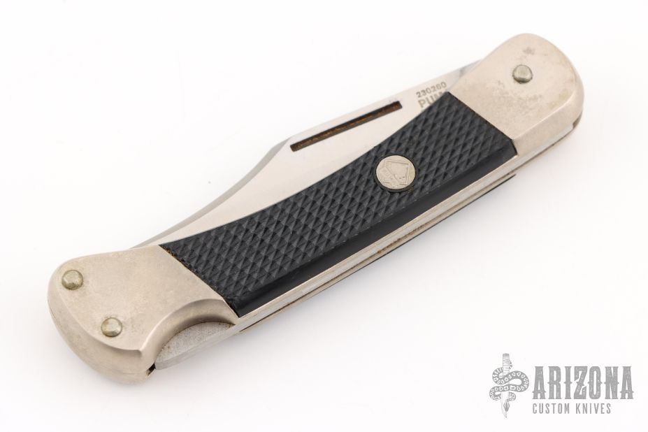 This Cadet by Puma Knives features a satin finished clip point blade with nail nick. It has a nickel silver frame with black insets. #43782. Has some light patina, otherwise excellent condition.