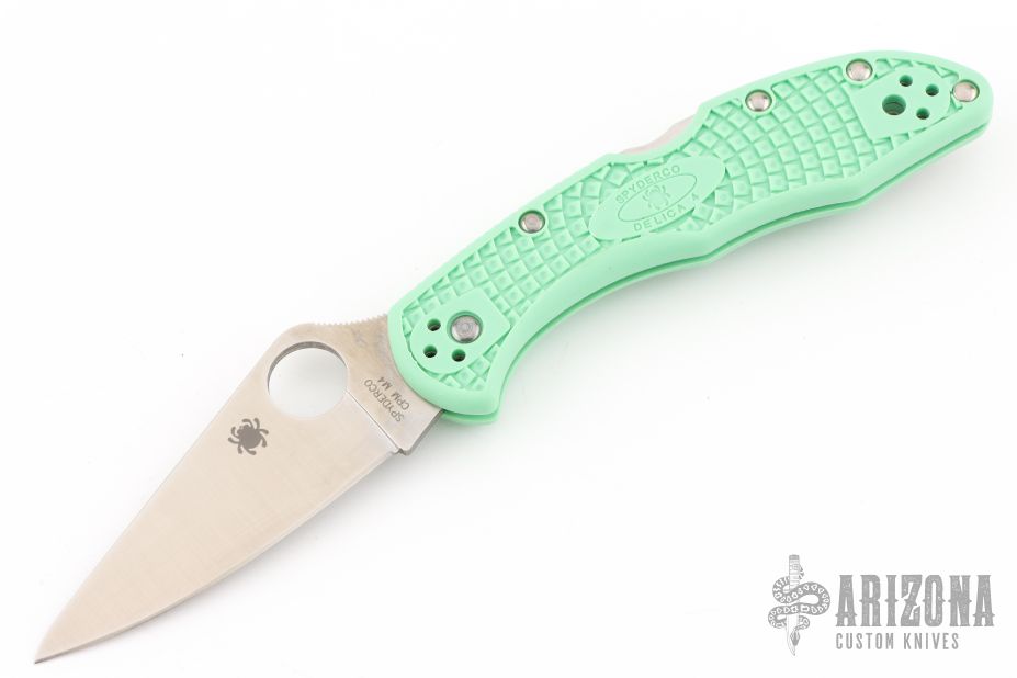 This Spyderco Delica 4 model is the first Delica ever to boast CPM M4 steel for the blade. It also has our popular mint green FRN handle.