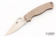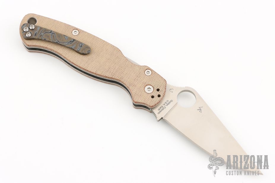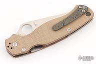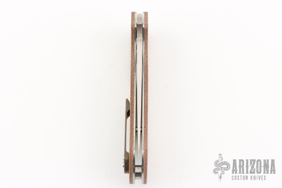 This Paramilitary 2 Linerlock Folder has a satin finished clip point blade with thumb hole and notched thumb rest. The handle has natural canvas micarta scales with stainless steel liners and a Ripps Garage Tech custom ZircuTi 4-way reversible clip. Comes with original box, clip and papers. Excellent condition.