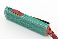 This Microtech Exocet features an apocalyptic finished tanto blade. The handle has a distressed green aluminum handle and a stainless clip that doubles as a money clip dated 01/2021, S/N 724. Comes with original box and papers. Excellent Condition.