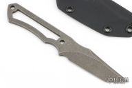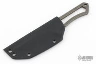 This knife by Brian Efros and JK Design features a milled clip point blade, thumb ramp, false top edge, .156" blade stock and .971" blade depth, full tang construction. The handle is skeletonized and has a lanyard hole. Comes with Kydex sheath and bag with both maker's stickers on it. Excellent condition.