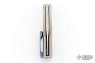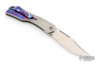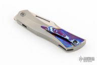 Celebrated knife maker Elijah Isham is kicking off his production line with the Blackstar Slip Joint folder. This model is equipped with a classic bowie blade and a titanium handle with Timascus inlays. The Blackstar offers a compact and stylish design that is perfect for your everyday carry rotation. An integral flipper tab provides satisfying deployment and low-profile carry. Pick up a sleek and affordable slip joint design with the Isham Bladeworks Blackstar. Features: CPM-20CV steel provides added blade strength and wear resistance. Ambidextrous deployment with a tang flipper or nail nick. Item includes a titanium pocket clip for tip-up carry. Comes with original zipper case. Excellent condition.