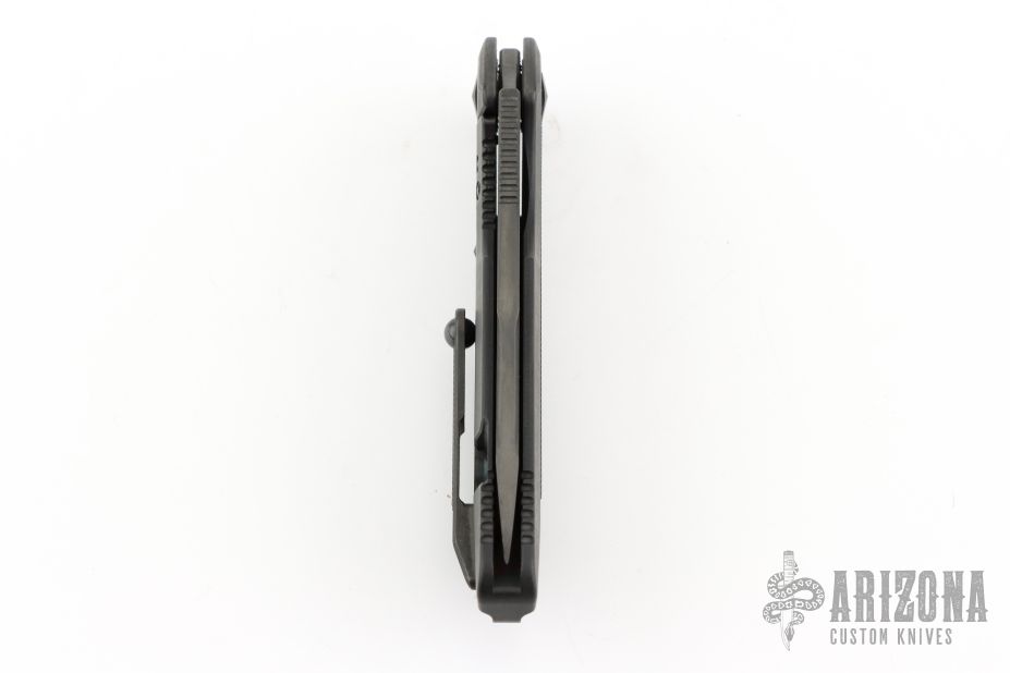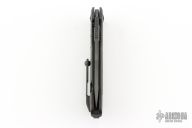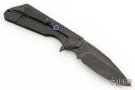 This MSG-3.5 by Mick Strider and Tony Marfione features a DLC Apocalyptic finished blade with notched thumbrest and flipper. The handle has a milled and DLC Apocalyptic finished integral titanium frame with a tip up clip with ceramic ball, anodized titanium lockbar stabilizer, lanyard hole at the butt. Nice detent, lockup and blade seating. Comes with original box, zippered case and metal COA. 03/2017 S/N 007. Excellent condition.