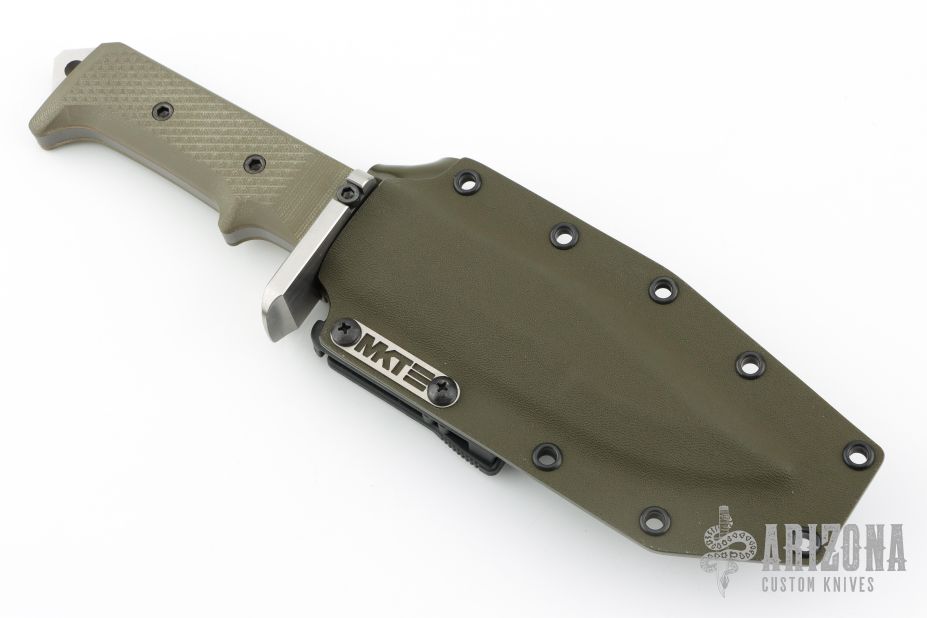 "For those of you who love the TBF (Too Big to Fail) Breakdown Fighter, but find the size a little too daunting, the USMC Raider is just for you! Our slightly smaller version of the TBF maintains all the wicked attributes of the larger knife, with an easy-to-carry size. It has the same radical combo grind using flat grinding on the tip for strength and hollow grinding on the main edge for razor sharp use over the years. The serrations are double row and razor sharp. The hardened stainless steel hilt is a built-in crowbar and unbelievably tough. Finally, the through-tang knife completely disassembles for thorough cleaning with a single Allen wrench.