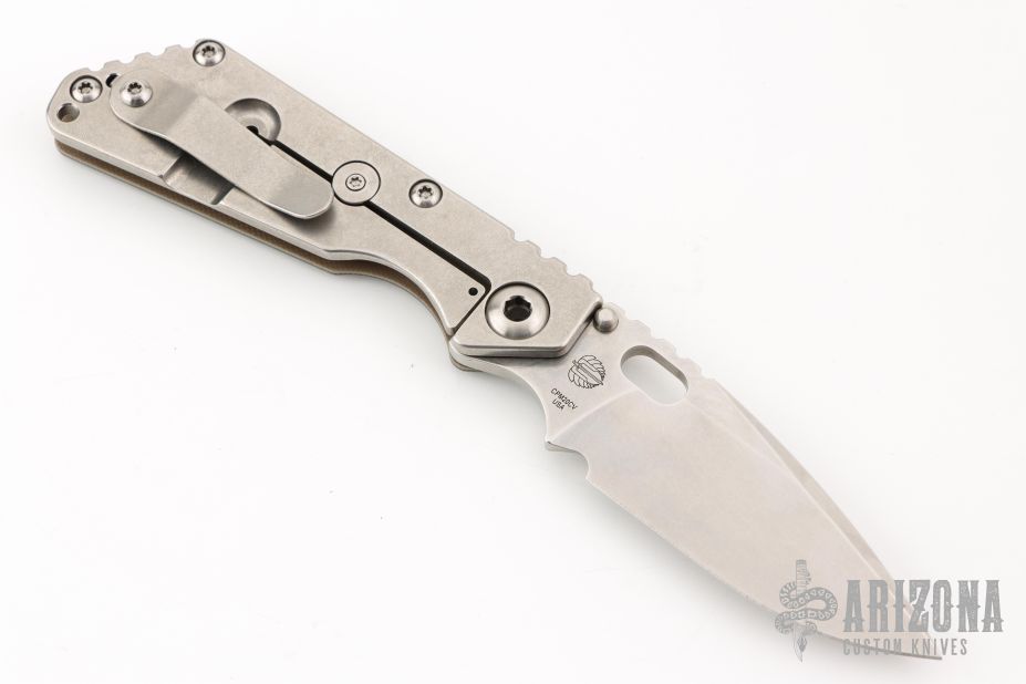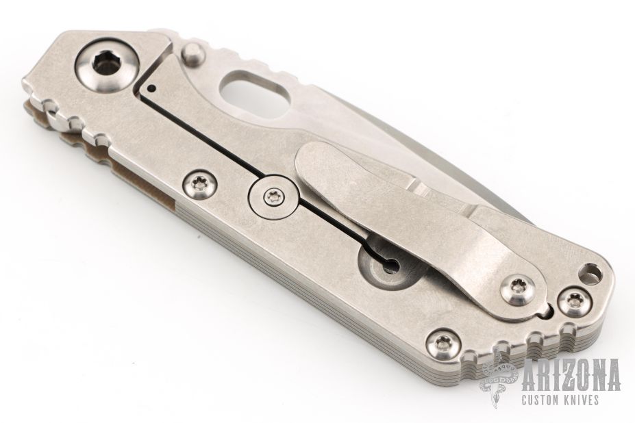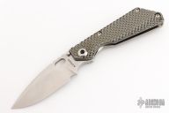 This SNG framelock folder features a stonewashed drop point blade with thumbhole and notched thumbrest. The handle has a gunner grip G-10 and stonewashed titanium frame with titanium clip, tip up carry. Jimping on blade spine. Nice lockup, detent, and blade seating. Excellent Condition.